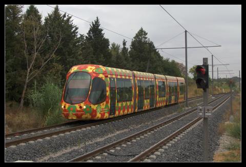 Was ist auf dem Bild zu sehen, was in dem Land, wo diese Straßenbahn