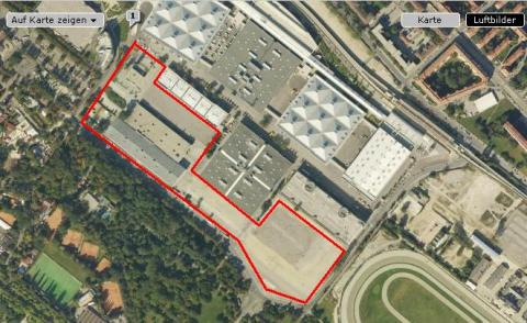 Standort ist eigentlich die von der Messe (noch) nicht verbaute Fläche. Was