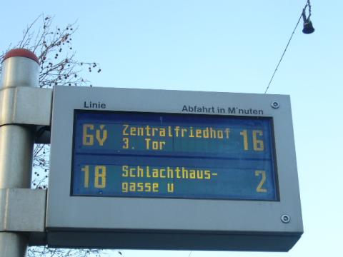 >Heute habe ich auf der Anzeige bei der Haltestelle Landstraße eine