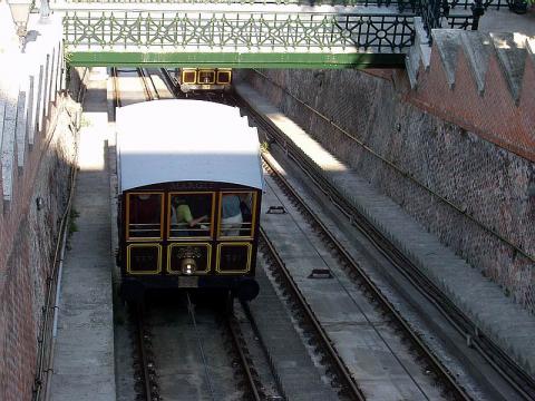 Die Standseilbahn auf die Burg. Eine erstaunlich unspektakulaere Fahrt.