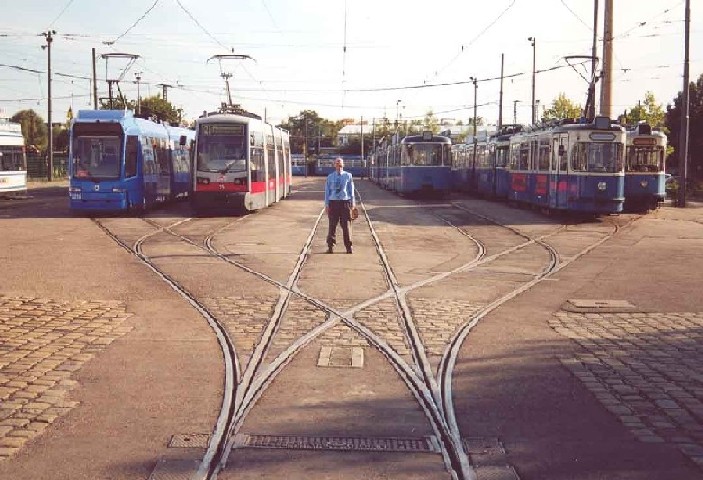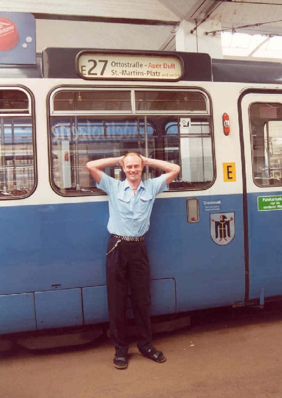 Bücher über die Münchner Straßenbahn stammen) präsentiert sich vor einem