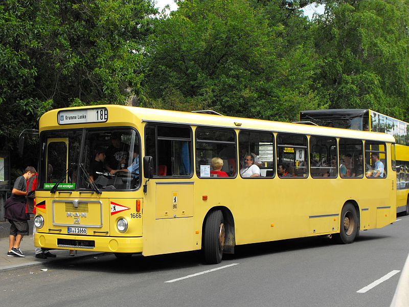 # Juni: Traditionsfahrt in Berlin. Der E2H85 (MAN SL200) 1666 macht sich am