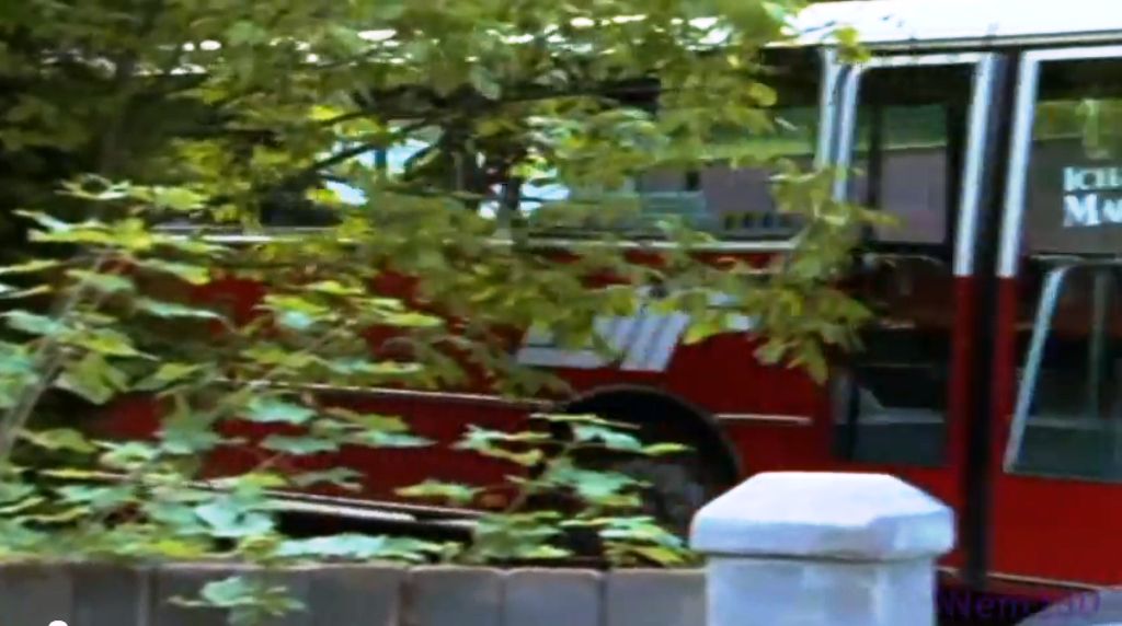 Der Bus fährt nur vorbei und ist im Hintergrund dann zu hören,