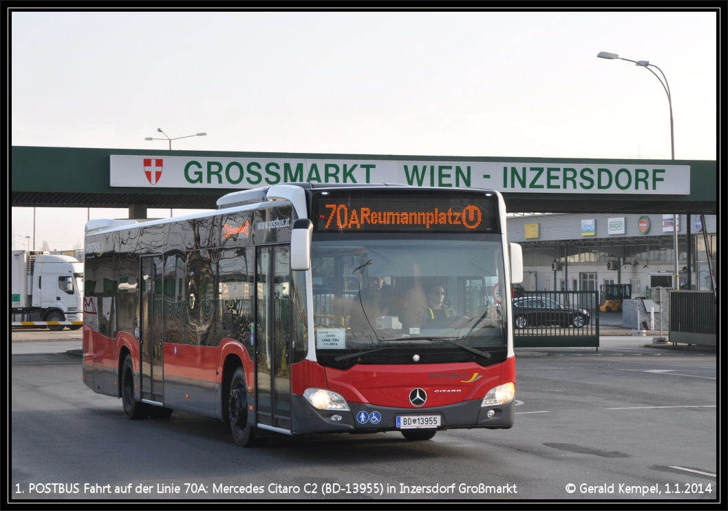 Um 12.19 fand die allererste Fahrt auf der Linie 70A zum Großmarkt Inzersdorf statt, der Bus