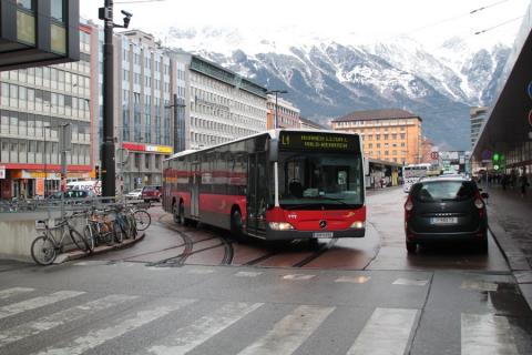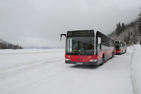 Gezeigt werden die Busse auf den Schibuslinien L1, L2 im Axamer Lizum und Innsbruck Hauptbhf.