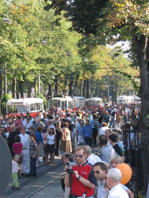 - Menschenmassen und ein Fahrzeugstapel am Burgring