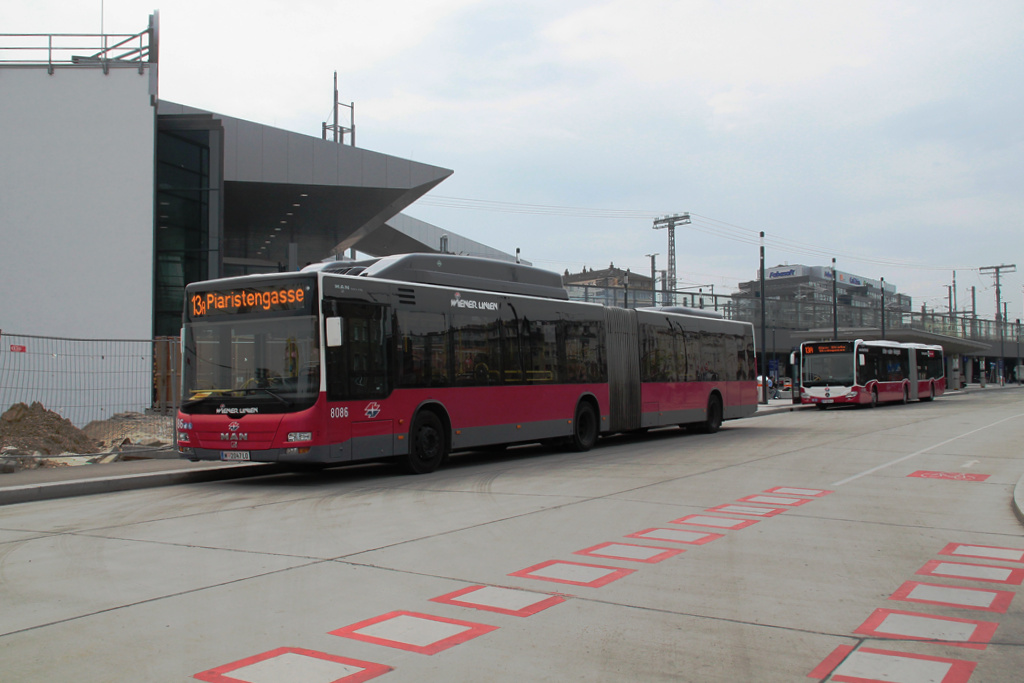 Der Bus stand für Schulungsfahrten/Testfahrten auf der 13A Strecke am Hauptbahnhof bereit.