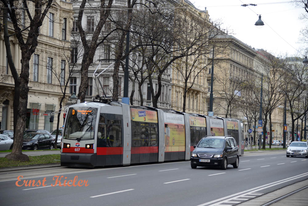 Bild 1 zeigt den B 607 als Linie D auf den Schubertring.