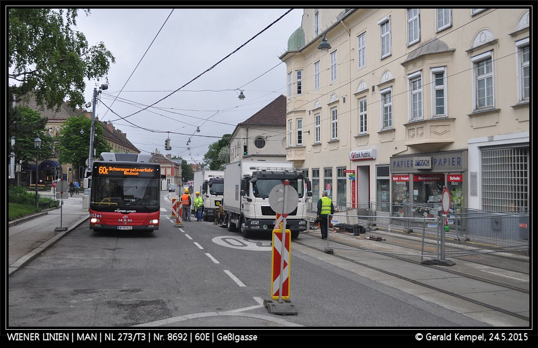 - 8692 in der Geßlgasse neben der Baustelle, die der Grund für diesen SEV war