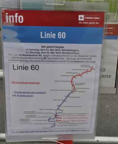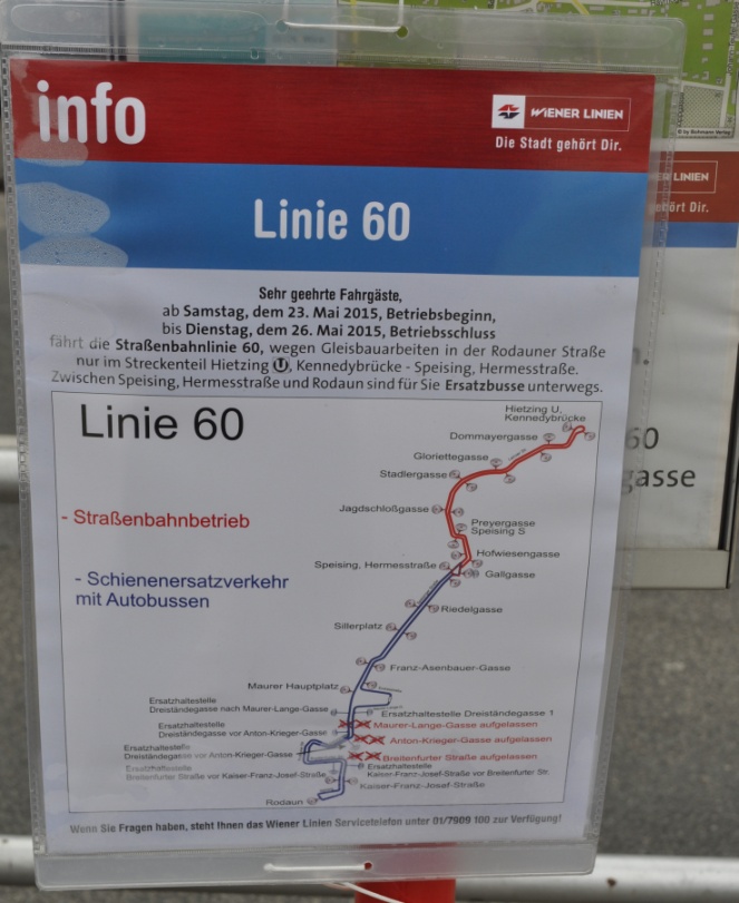 nach Rodaun wurde ein SEV "60E" mit Normalbussen der Garage Raxstraße eingerichtet.