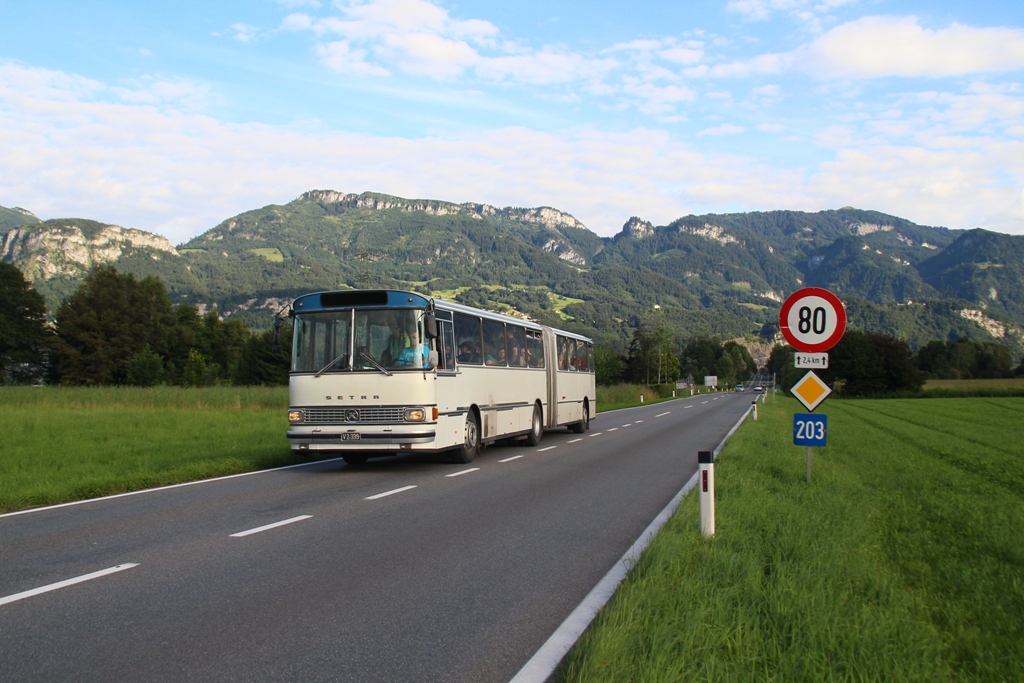 Im Jahr 2016 läuft der 39 Jahre alte Setra SG180S, V2.339 der Firma Weiss-Reisen,