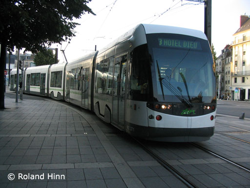 Bild 1 zeigt den Ursprungstriebwagen 312 in der Haltestelle Place du Cirque,