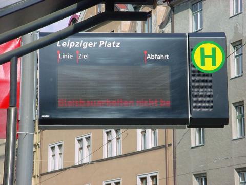 RBL-Display am Leipziger Platz Richtung Zentrum. Neben entsprechenden an