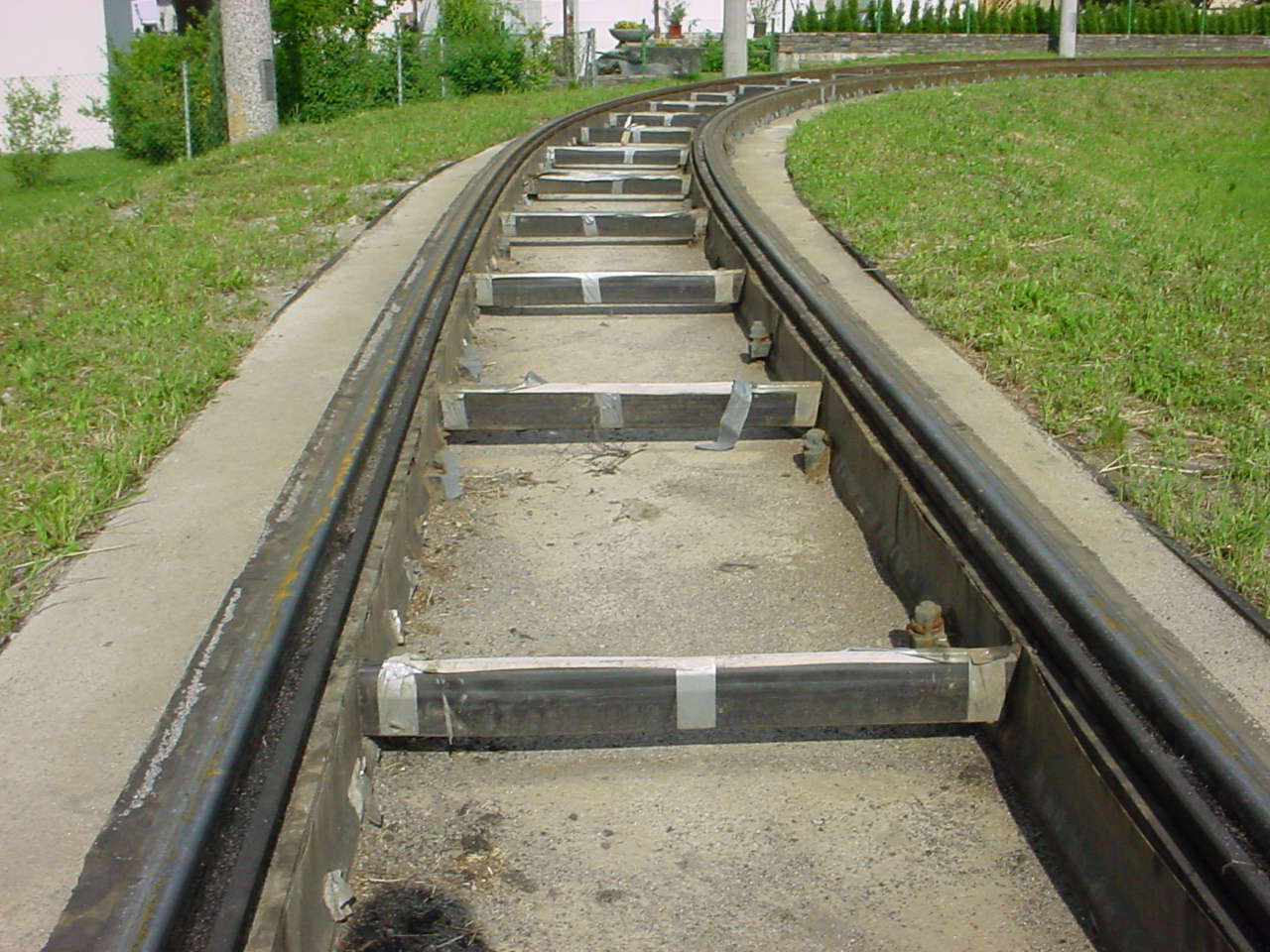 Einfassung des Betons sowie an den Schienen zu sehen.
