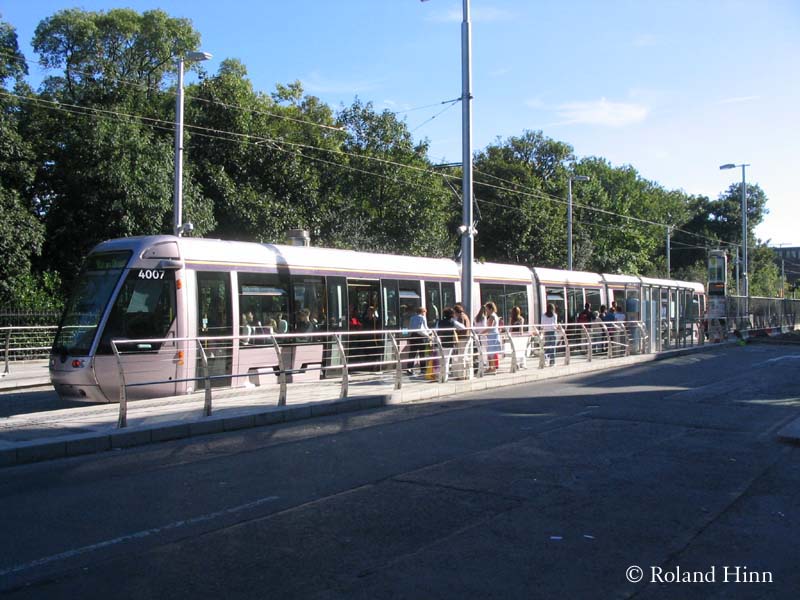 Bild 1 zeigt Citadis 4007 in der Endstelle "St. Stephen's Green" der grünen