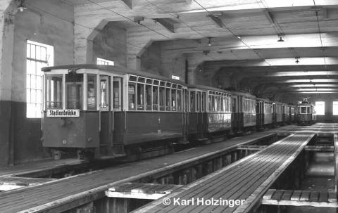 die Fruethstraße. Hinter ihm sehen wir zwei abgestellte L1, zwi k5 und einen