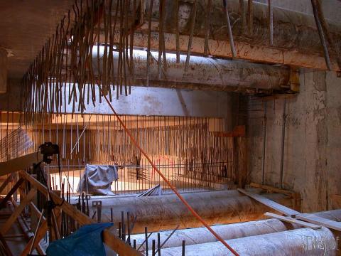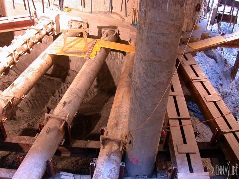 senkrechte runde Ding ist ein freigelegter Bohrpfahl, der später abgebrochen