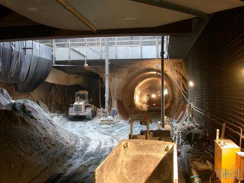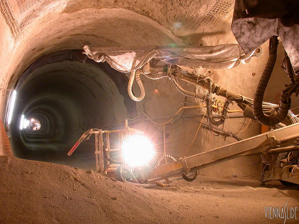 Tunnelbagger im Querschlag, unmittelbar hinter mir die Tunnelwand der U1.