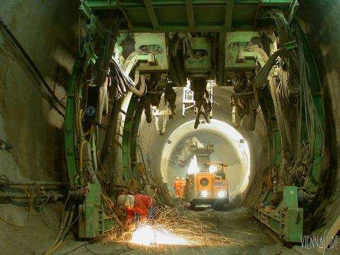 Der Vortrieb erreicht etwa 4 Meter pro Tag, Aufnahmestandpunkt ist etwa bei