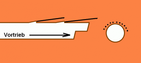 Vortrieb der Boden im Arbeitsbereich verfestigt. Dazu werden trichterförmig