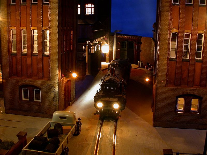 > offenbar zwischen zwei Fabrikshallen hervorlugende 310er.