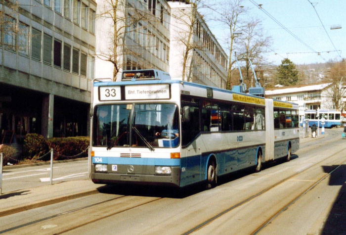 Jahre 1994: Wagen 104 wurde am 11.03.2005 an der Kirche Fluntern abgelichtet