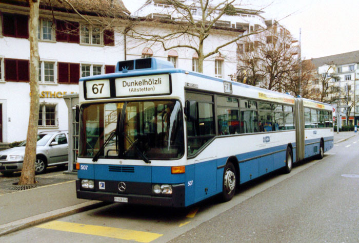 Gelenkbusse. Der Mercedes-Benz O 405 GN1 mit der Nummer 507 wartete an der