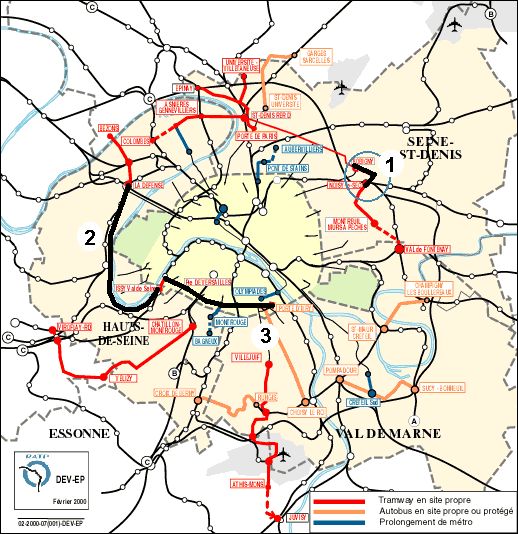 Paris plant bis 2010 etwa 60 km Tramwayneubaustrecken. Derzeit verkehren die