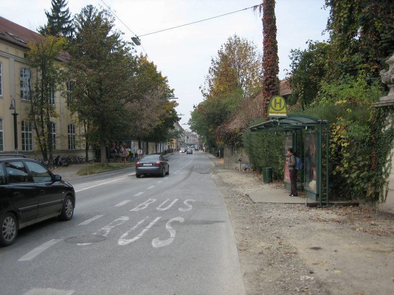 Halbkaphaltestelle Nibelungengasse stadtauswärts -- das Wartehaus bleibt