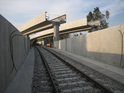 fertig liegen. Das dritte, abgesenkte Gleis ist die Verbindung durch den