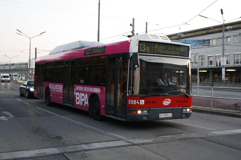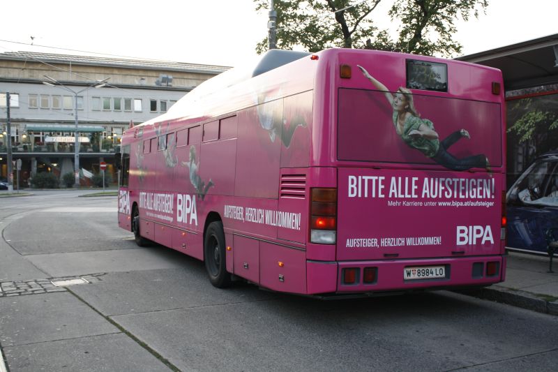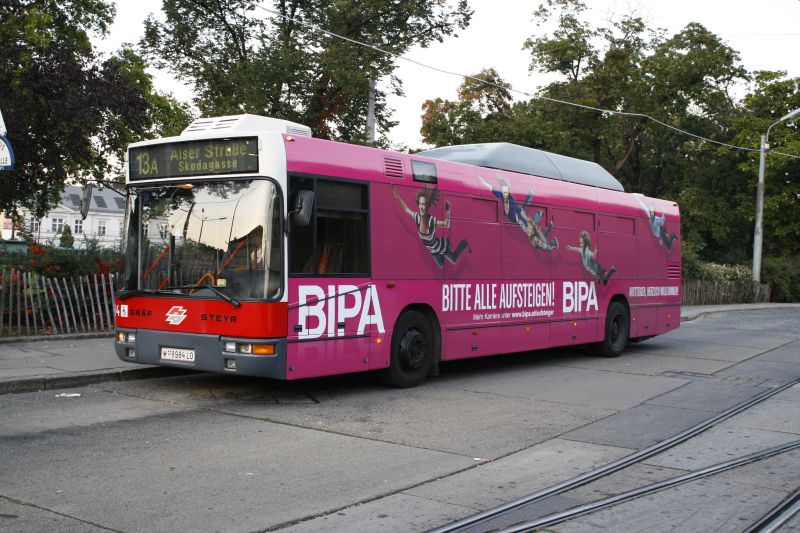 Die Handelskette BIPA hat scheinbar genug Geld locker gemacht und sich NL205M12 8984 als fahrende Werbetafel gemietet. Man wirbt hier für Arbeitsplätze im Unternehmen. Zeitgleich mit den Wahlen kam der Bus auf die Strecke, ob man da nicht Gemeinsamkeiten finden kann?