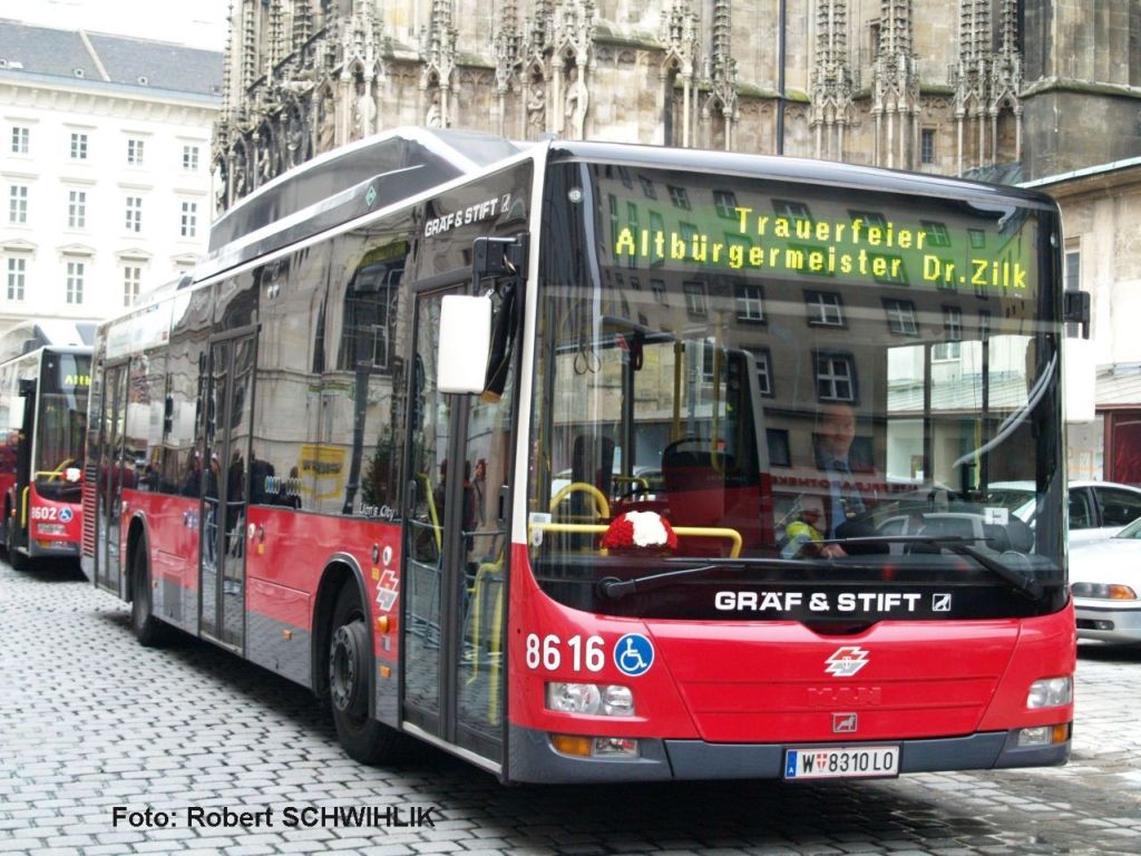 Sonderbussen (6 NL273 T3) zum Zentralfriedhof transferiert.