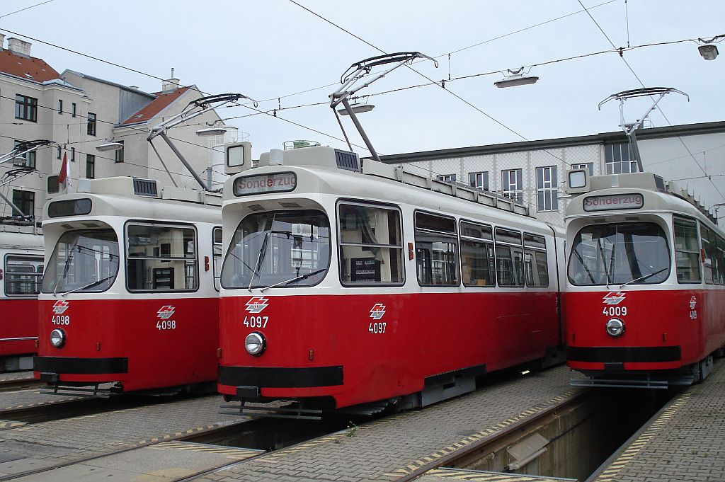 4098 friedlich in der "Halle V" des Bahnhofs Favoriten nebeneinander.