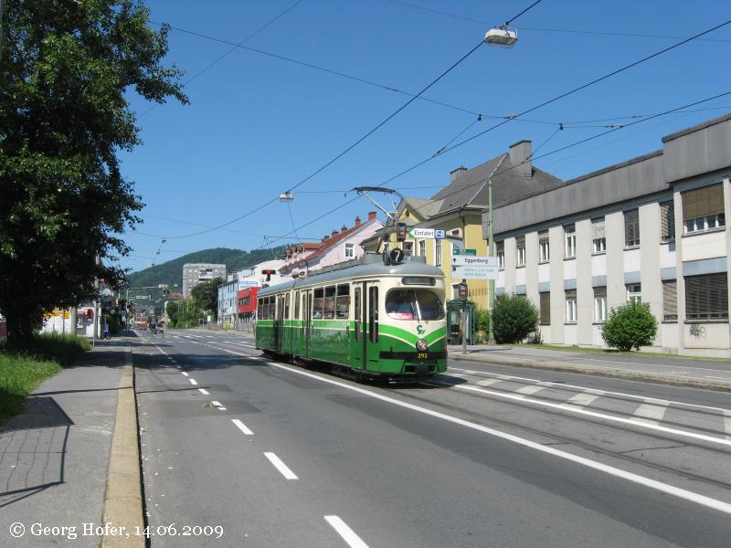 Bild 1: Wagen 292 vor der Bahnunterführung in der Eggenberger Allee. Die