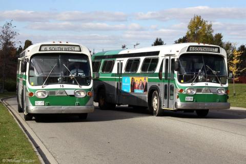 A small group of enthusiasts chartered a 1981 GM Fishbowl in Stratford as well as riding a 1984 GM Classic then drove over to Woodstock where we rode a 1976 GM Fishbowl 14 and then swapped it with 16 which was running as a service bus, later that was exchanged for a 1989 MCI Classic.