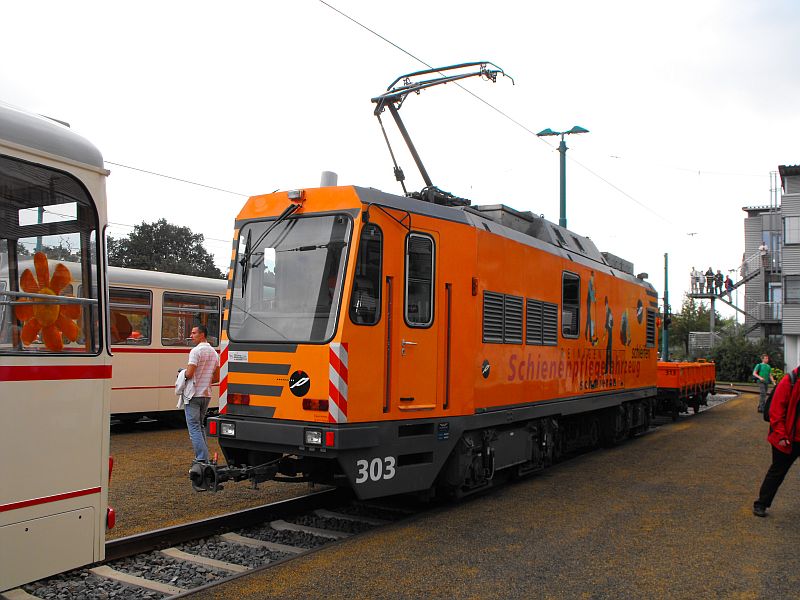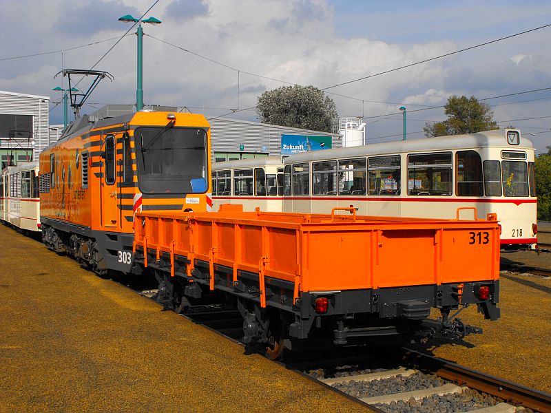 Auf der Fahrzeugschau war der ATw 303 mit der Lore 313 zu sehen. An der