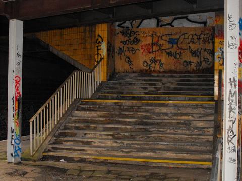 die versperrten Zugänge zu den oberen Bahnsteigen.