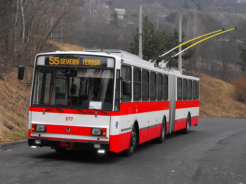 Vier Skoda 15TrM13/6, einer (574) von 2001 und drei von 1995 (575 - 577)