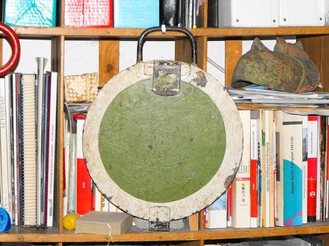 Man sieht einen Zug der Baureihe F90, der gerade den Bahnhof als Leerzug durchfährt. Bei der Berliner U-Bahn werden seit jeher durchfahrende Züge mit einem grünen Spitzensignal gekennzeichnet. Früher war es eine runde Metallscheibe nach Art dieses guten Stücks, das seit Jahren an meinem Bücherregal hängt (legal erworben). Heute ist es eine grüne Lampe als drittes Spitzenlicht oder – wie hier – ein grünes Feld im Rollband.