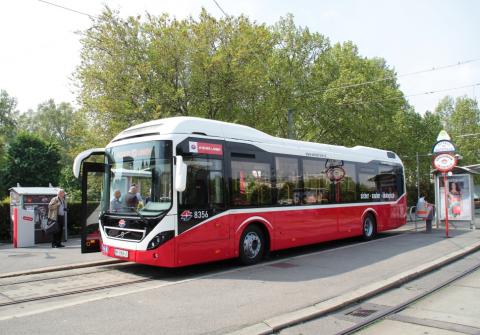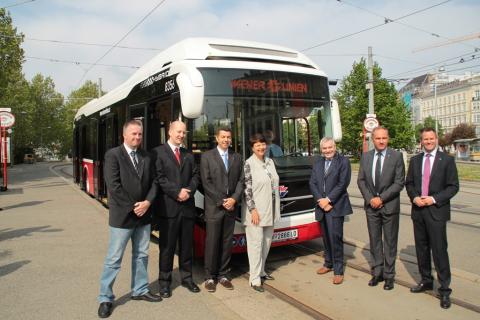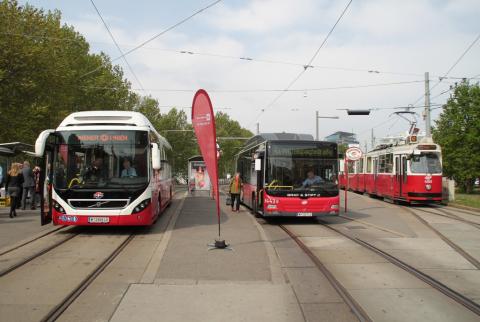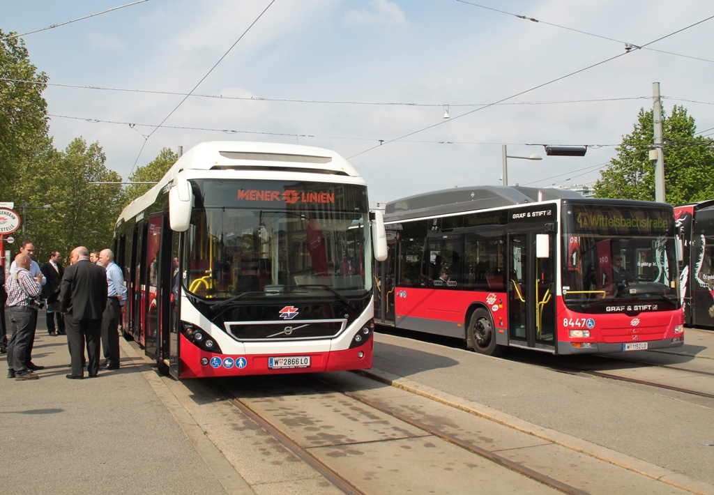 Präsentation des neuen Volvo Hybridbus am Karlsplatz, 24.4.2014
