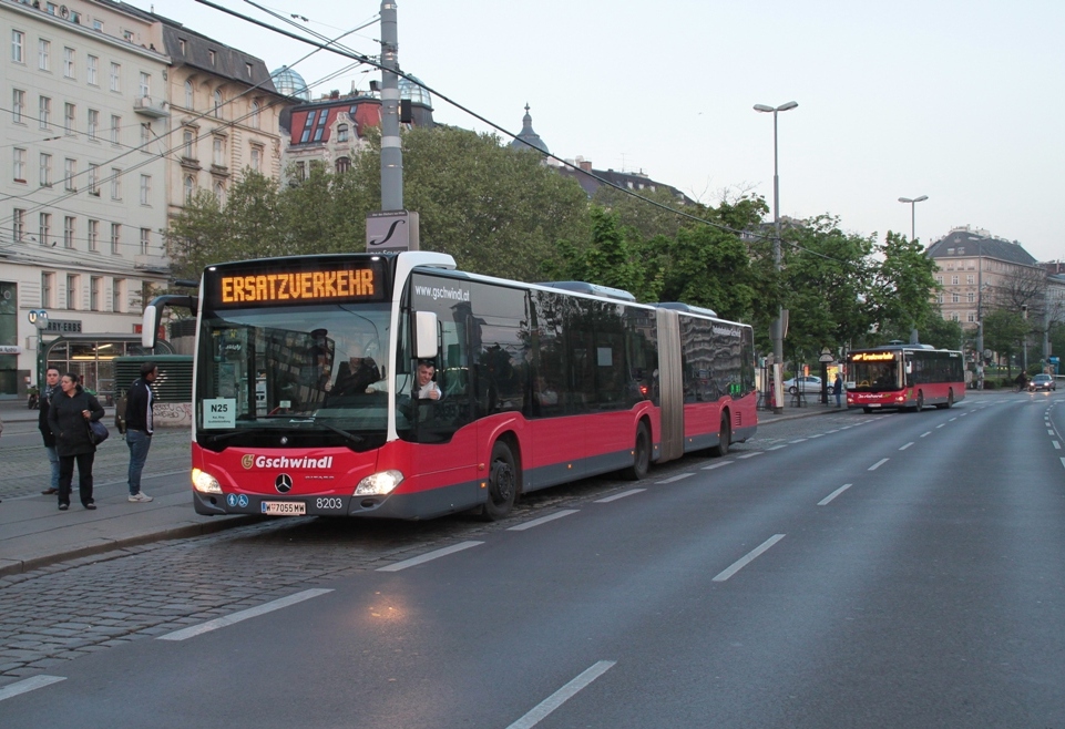der letzte N25 fuhr gegen 7:15 am Praterstern zur Oper der letzte N29 (Wagen 6400)