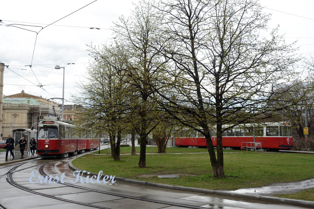 Bild 1 zeigt den Zug 4304 + 1504 am Karlsplatz sowie den Gegenzug 4019 +
