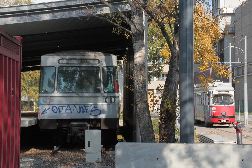 In Leopoldau gesellte sich zum U 2011-3011 auch ein E1, 4755. Sogar den Spiegel lies man dran.