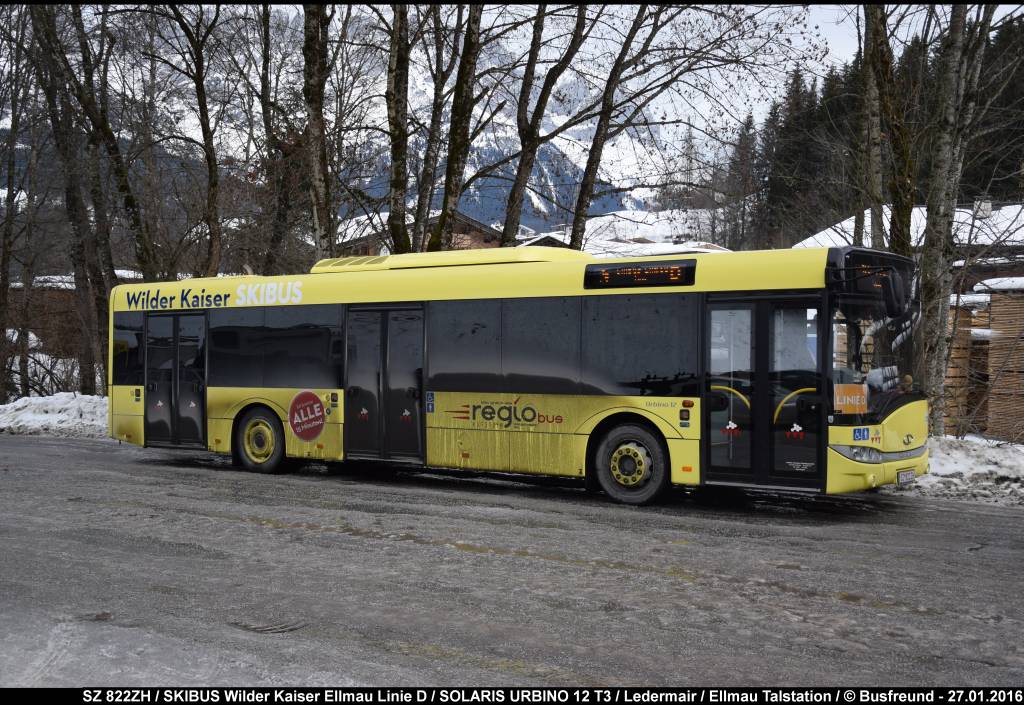 Auch in Ellmau ist der Skibusverkehr bereits voll im Gange. Recht unspektakulär wird dieser durch die Firma Ledermair ausschließlich mit SOLARIS URBINO 12 (2 und 3-türig) betrieben.