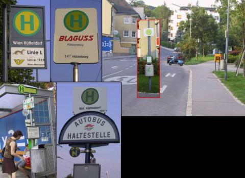 Anbei eine Collage mit verschiedenen Haltestellentafeln.