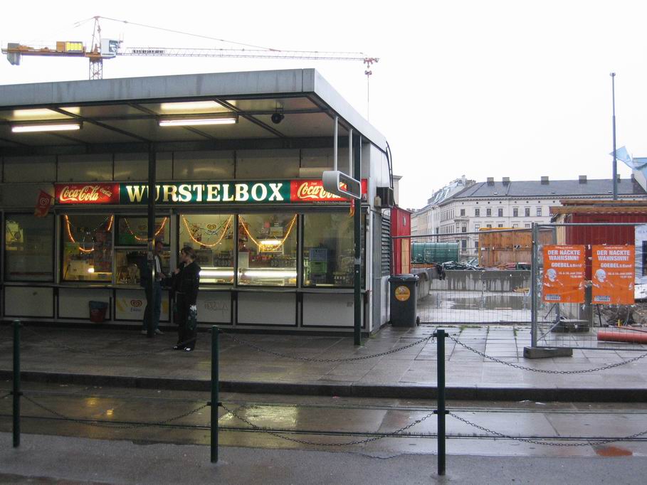 Ende der Station. Vor der rechten Cola-Werbung ist ein neuer Leuchtkasten zu