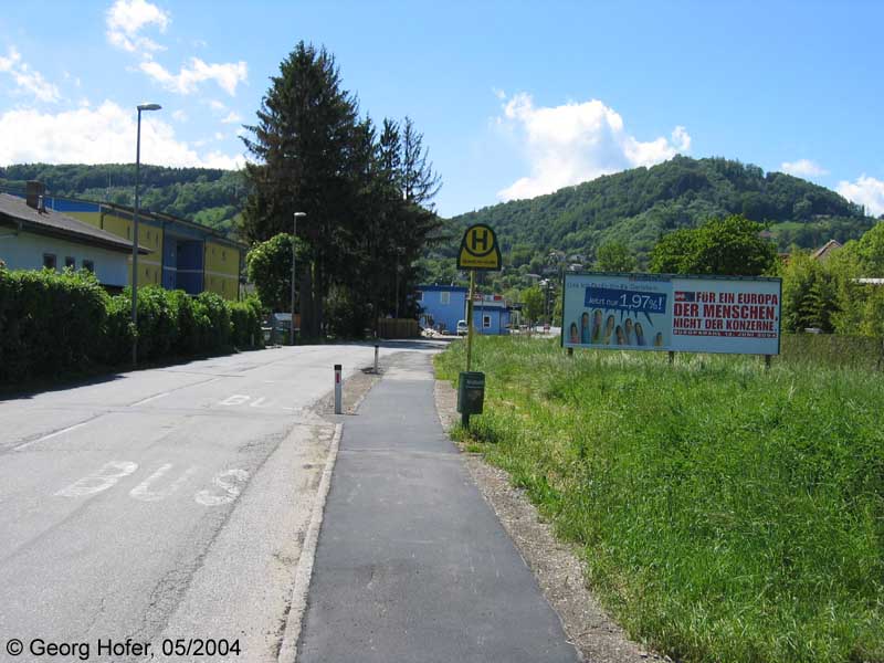 halbe Haltestelle einen Gehsteig und die halbe nicht, eher suboptimal.