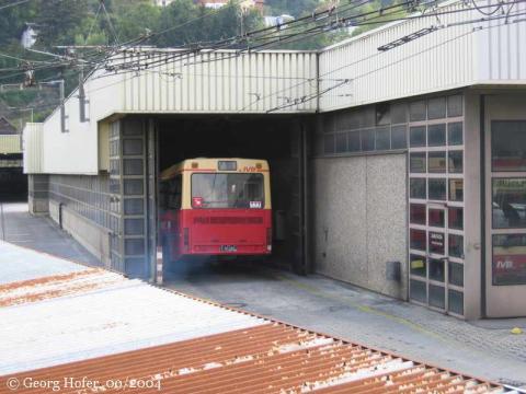 der Linie 6, der gerade beim Einziehen in den Betriebshof der IVB war,