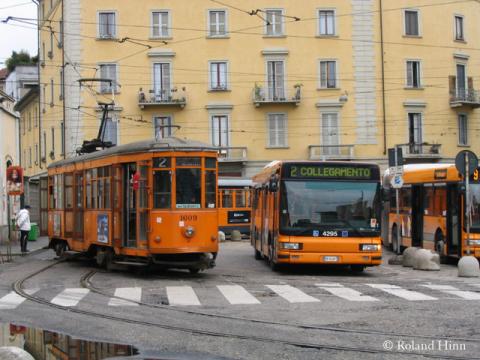 9: Alt trifft neu: Beim Bahnhof "Stazione Genova" trifft TW 1609 (Linie 2)
