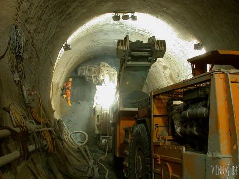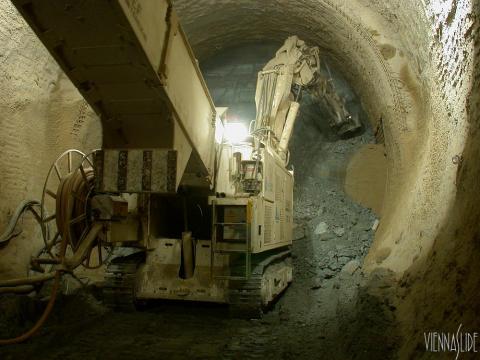 Der Vortrieb erreicht etwa 4 Meter pro Tag, Aufnahmestandpunkt ist etwa bei